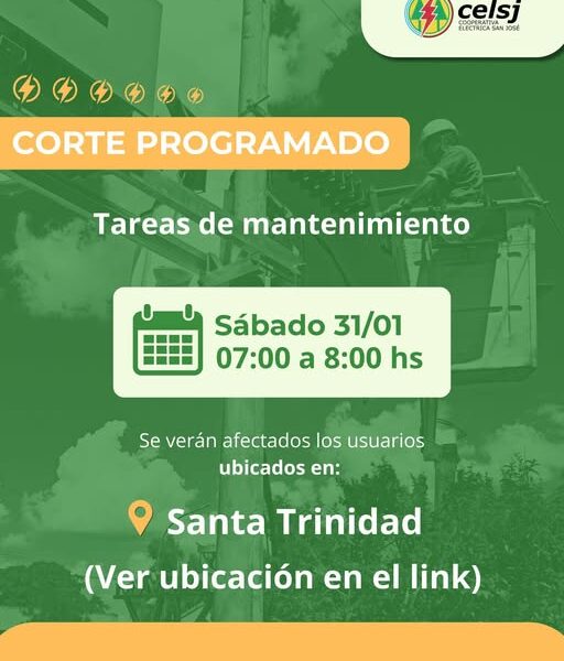 Destacados CORTE DE LUZ EN SANTA TRINIDAD CORTE DE LUZ EN SANTA TRINIDAD 30/01/2026 Corte Programado en Santa Trinidad, ver ubicación en el siguiente link: https://www.google.com/mymaps/viewer… Related Itemsdestacar Destacados 30/01/2026 Related Itemsdestacar