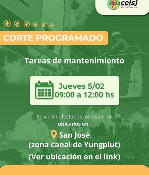 Destacados Corte Programado en San José Corte Programado en San José 04/02/2026 zona canal de Yungplut), ver ubicación en el siguiente link: https://www.google.com/maps/d/u/0/viewer… Related Itemsdestacar Destacados 04/02/2026 Related Itemsdestacar