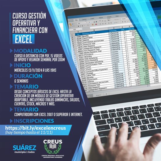 CREUS abre la inscripci贸n al curso online “Gesti贸n Operativa y Financiera con Excel”, dise帽ado especialmente para comerciantes, emprendedores, estudiantes y profesionales que deseen crear planillas de c谩lculo adaptadas a sus locales comerciales y mejorar la gesti贸n de su negocio.