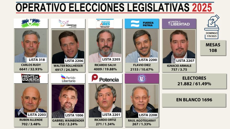 El resultado le permite al oficialismo sumar cuatro concejales, mientras que la Libertad Avanza incorpora dos legisladores y también son dos los representantes de Nuevos Aires que se incorporan al concejo deliberante.