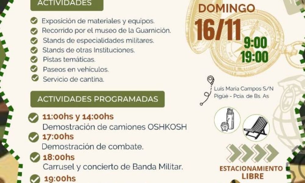 Destacados Jornada Puertas Abiertas – Guarnición Militar Pigüé Jornada Puertas Abiertas – Guarnición Militar Pigüé 13/11/2025 Jornada Puertas Abiertas – Guarnición Militar Pigüé Related Itemsdestacar Destacados 13/11/2025 Related Itemsdestacar
