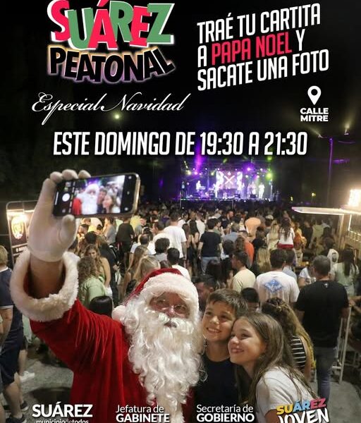 Papá Noel será parte de la 16° edición de Suárez Peatonal y espera a los más chicos junto a sus familias para vivir un momento pleno de ilusión. Vení a acercarle tu cartita para esta Nochebuena y sacate una foto que quedará para siempre en el recuerdo.