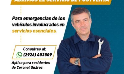 para atender a vehículos afectados a los servicios esenciales..Solo aplica para residentes en Coronel Suárez.Por consultas exclusivamente...