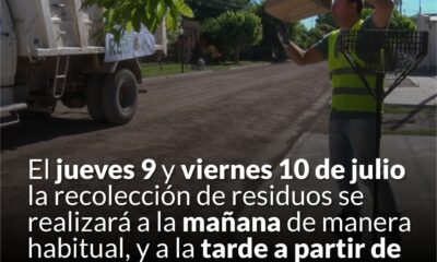 La secretaría de Servicios Públicos informa que los días jueves 9 y viernes 10 de julio, feriados,...