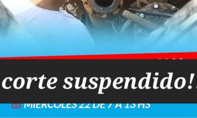 Desde la Secretaría de Obras Públicas informa que se SUSPENDE el CORTE TOTAL DE AGUA programado para...