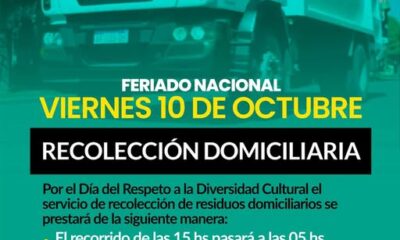 La secretaria de Servicios Públicos informa a la comunidad que este viernes 10 de octubre –feriado nacional,...