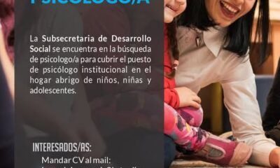 La Subsecretaria de Desarrollo Social se encuentra en la búsqueda de psicologo/a para cubrir el puesto de...