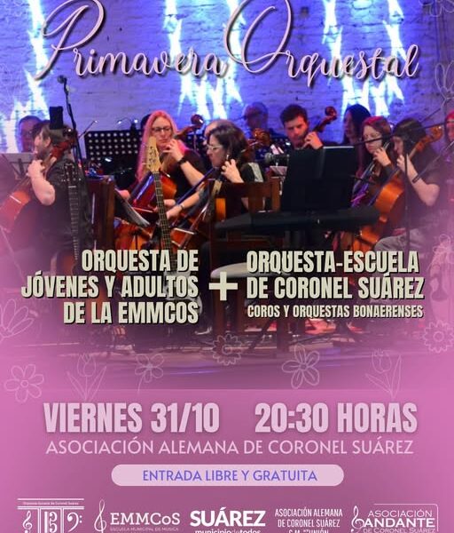 🌸 Acompañan: Asociación Alemana Unión, Asociación Andante, Programa Provincial de Coros y Orquestas Bonaerenses, Escuela Municipal de Música de Coronel Suárez y Suárez Municipio.
