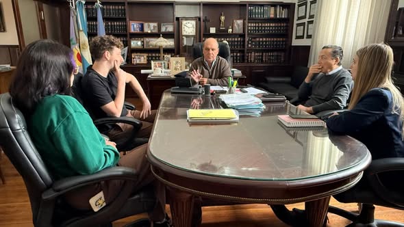 El intendente Ricardo Moccero mantuvo una reunión con Lucas Mauas, titular de la empresa textil Karina Echt Home & Deco, que ya comenzó a producir en nuestra ciudad junto a la cooperativa local “Buenas Puntadas” y emprendedoras textiles de la ciudad, en el marco de un trabajo articulado con la Dirección de Producción del Municipio, encabezada por Fiorella Guarnieri.
