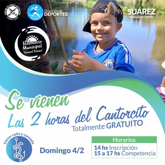 ????Organizado por la Dirección de Deportes y el Centro de Pesca Deportiva de Coronel Suárez, este domingo 4 de febrero se realizará la 2° fecha del tradicional encuentro de pesca infantil: “Las dos horas del cantorcito”, con el objetivo de sumar a los más pequeños de la comunidad en esta divertida modalidad deportiva.