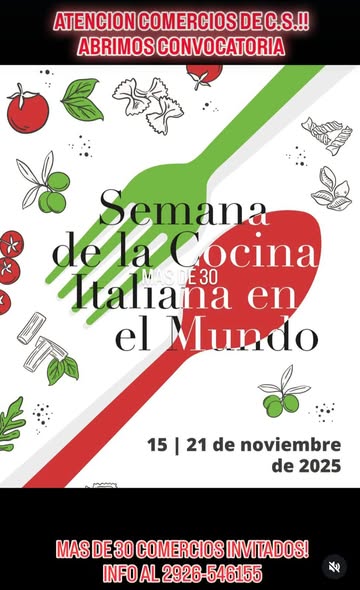 Pensamos una semana gastronómica dónde cada local o emprendimiento pueda mostrar sus especialidades vinculadas a nuestra Italia!!