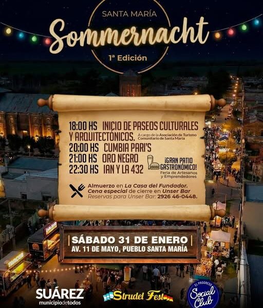 Este sábado 31 de enero, Santa María vivirá la primera edición de Sommernacht (Noche de Verano), una propuesta pensada para disfrutar en comunidad, organizada por la Delegación Municipal, junto a instituciones de Pueblo Santa María y emprendedores locales.