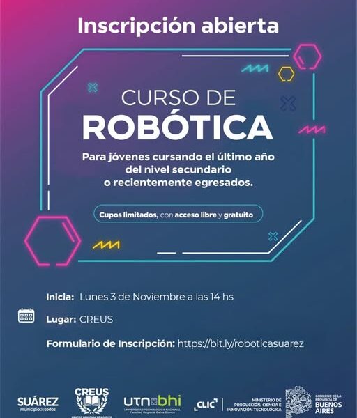 ✍️La Gestión de Gobierno Municipal, a través de la Dirección de Producción y el CREUS, te invitan a un curso de robótica totalmente gratuito.