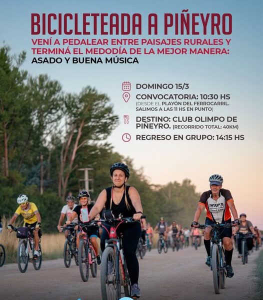 Tras el éxito de la bicicleteada turística a Cura Malal, la Dirección de Turismo —dependiente de la Jefatura de Gabinete— organiza una nueva propuesta para disfrutar del paisaje y la vida rural del distrito con destino a la localidad de Piñeyro.