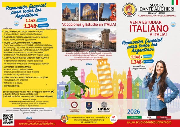 Quedan las últimas vacantes para el viaje de estudio de la lengua italiana que se va a realizar en el mes de septiembre 2026. Por consultas, pueden dirigirse a la Asociación “Luciano Manara”.