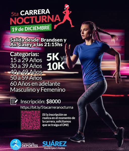 Incripción a través del link: https://bit.ly/5tacarreranocturna Costo $ 8000